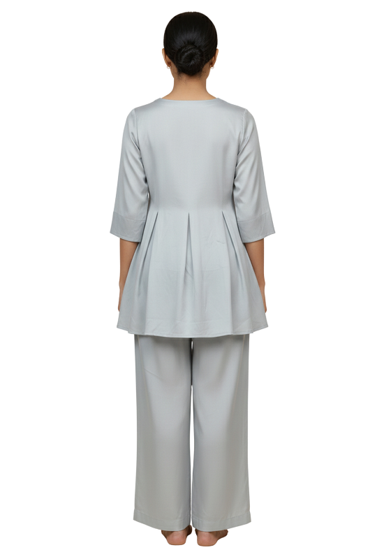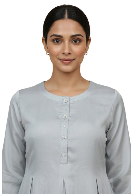 The frock features a relaxed yet flattering silhouette, allowing ease of movement and all-day comfort. Its minimalist design makes it a versatile wardrobe essential—perfect for casual daywear, evening gatherings, or understated festive looks. Designed to be worn effortlessly, this silk frock embodies timeless femininity and modern luxury.