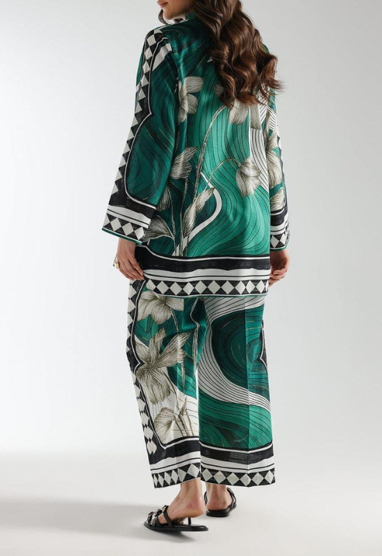 The printed shirt features a flattering cut with a graceful fall, paired seamlessly with coordinated printed trousers. This stitched 2 piece suit offers a polished look suitable for: